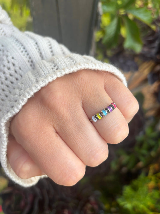 Fidget Rings are a wonderful and unique way to help reduce stress and bring you back to a calm state. Spin the beads to redirect your focus onto your breathing and start taking more mindful breaths. When you're feeling anxious, remember your fidget ring is there to guide you.